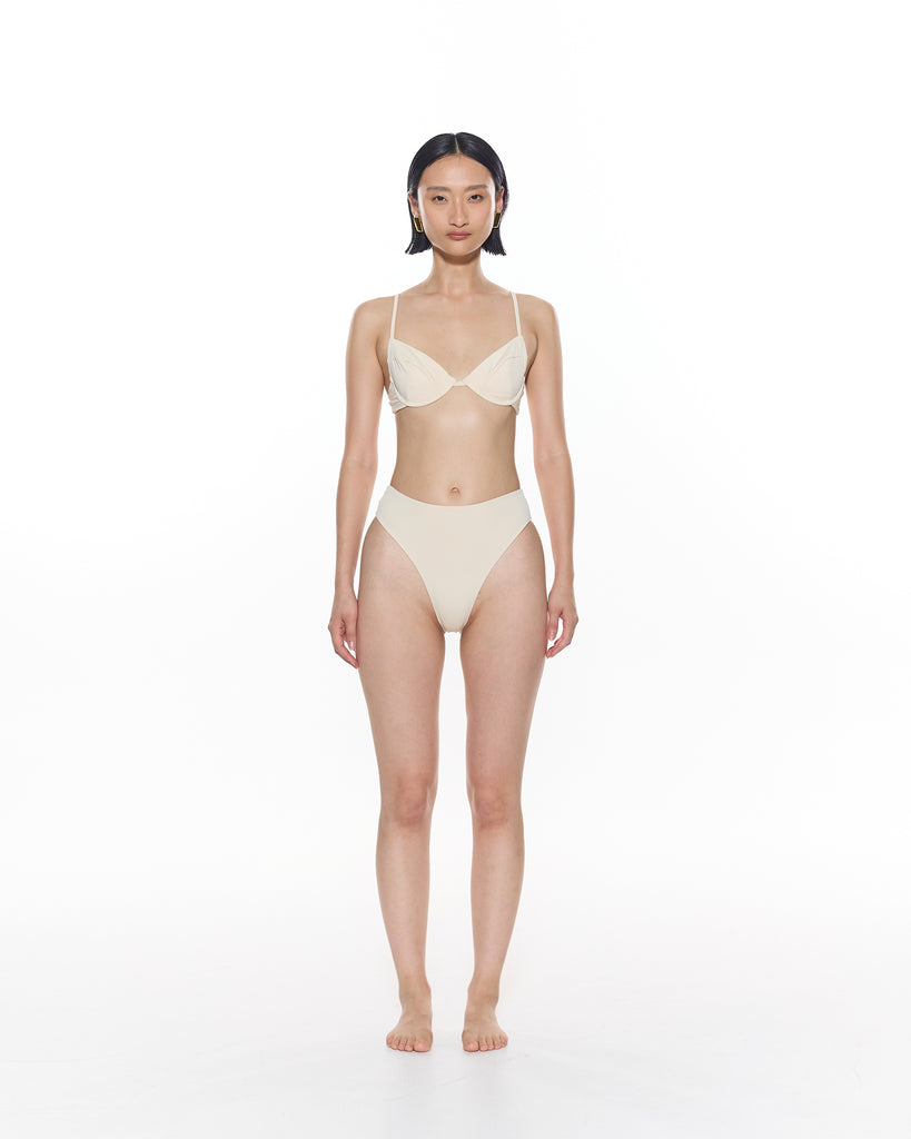 The Jardin is a supportive, bralette bikini top featuring thin adjustable shoulder straps, lined cups and an underwire bust.