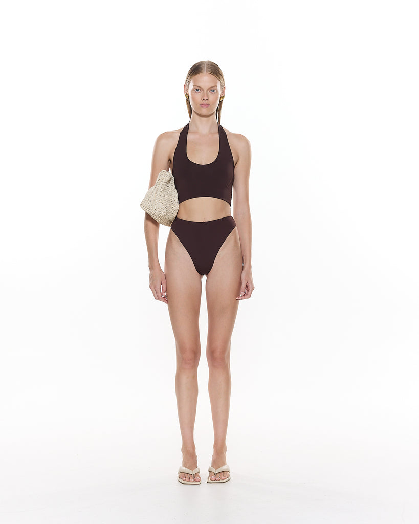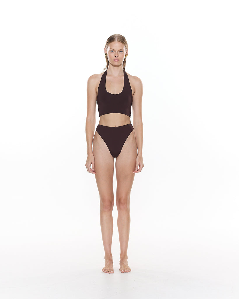 The Matteo Ruched Bikini Bottom features a high waist and minimal coverage bottom compliment by a centre ruching detail.