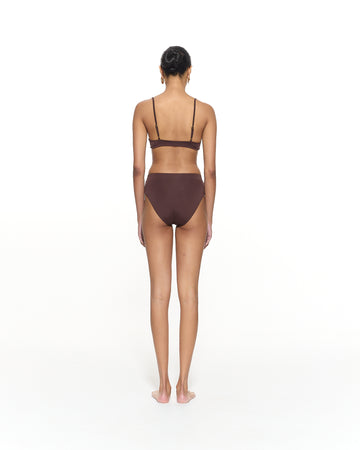 The Hugo High Waist Bikini Bottom features an elastic waistband and full coverage bottom.