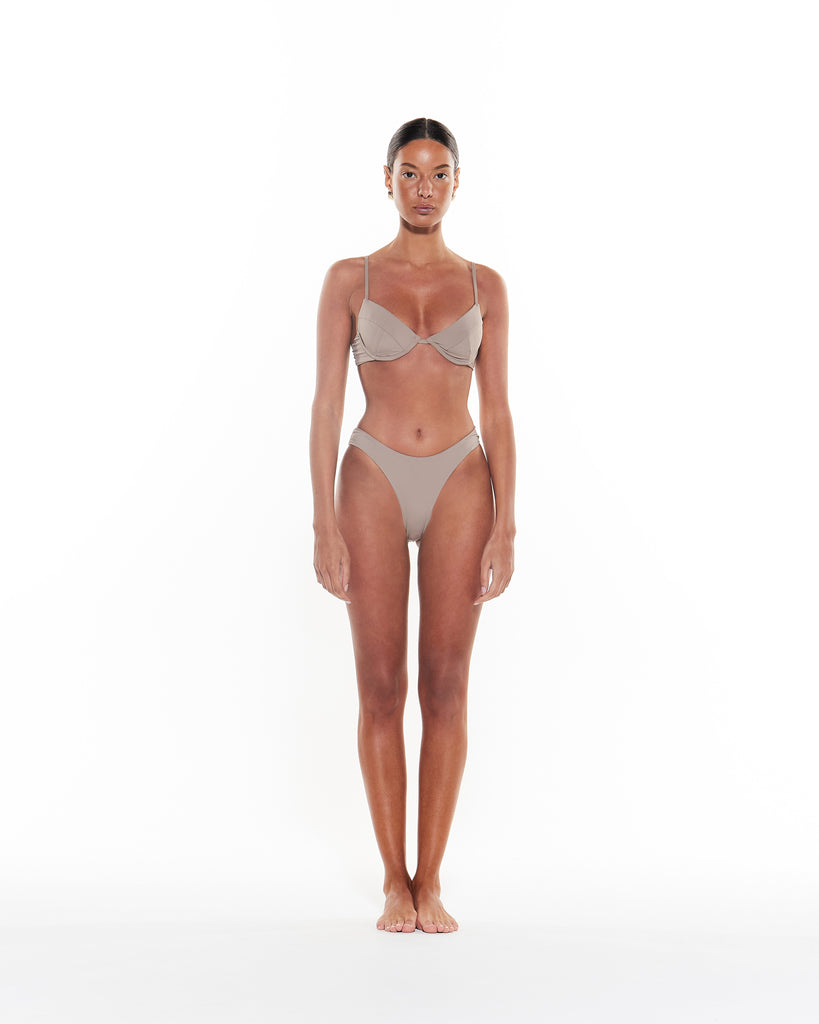 The Cindy Cheeky Bikini Bottom features a low-rise front, fixed sides and a mid coverage bottom.