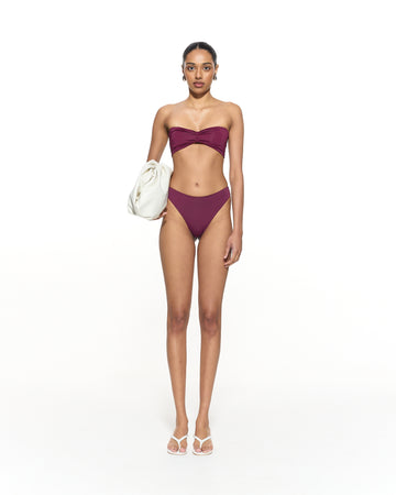 The Kaia Bandeau Bikini Top features a strapless neckline and gathered bust detail for a contoured look.