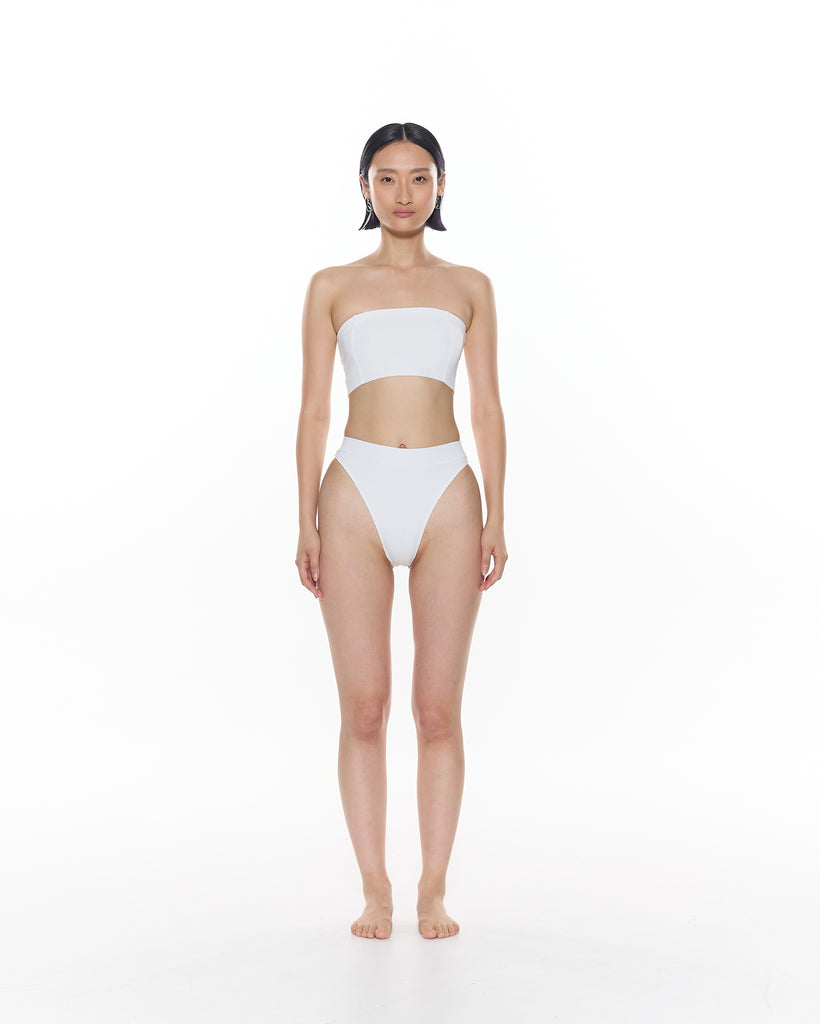 The Kahlo High Waist Bikini Bottom features a flattering waistband, flattering high leg cut and thong bottom.