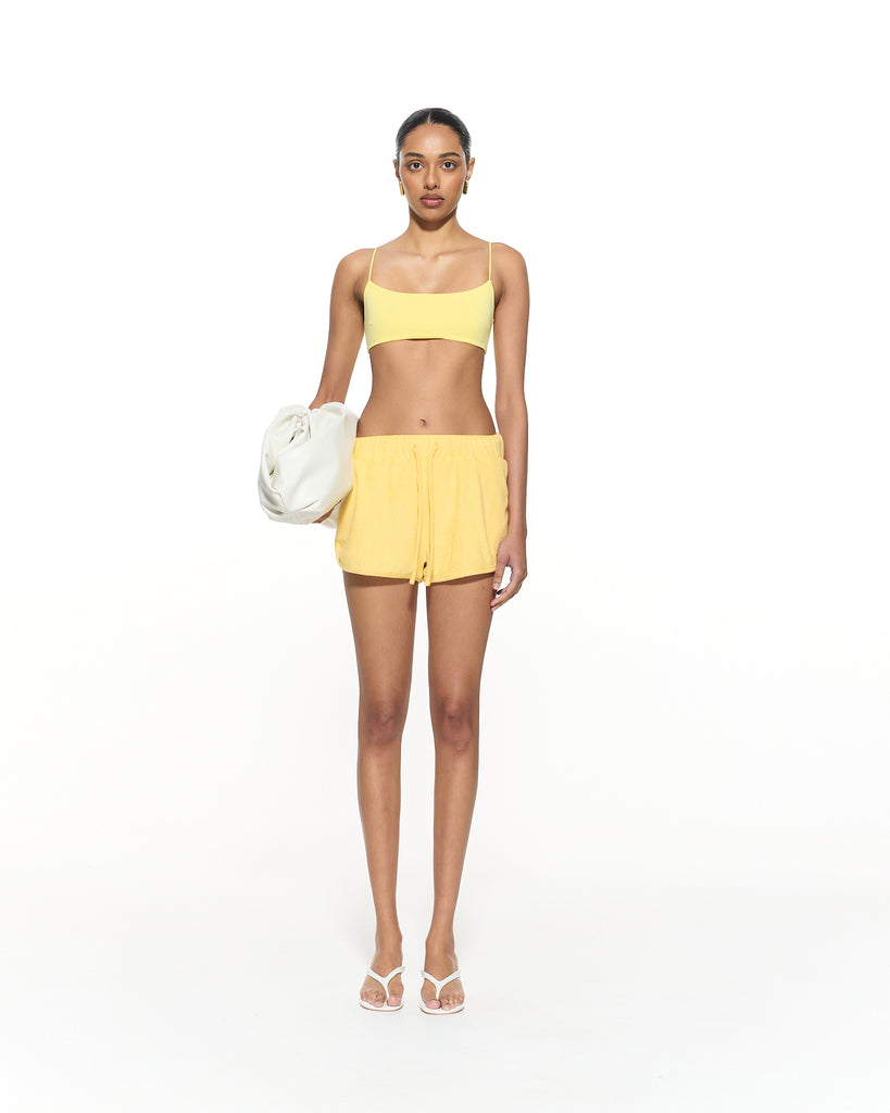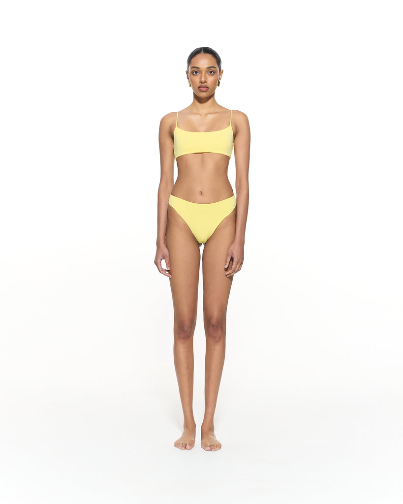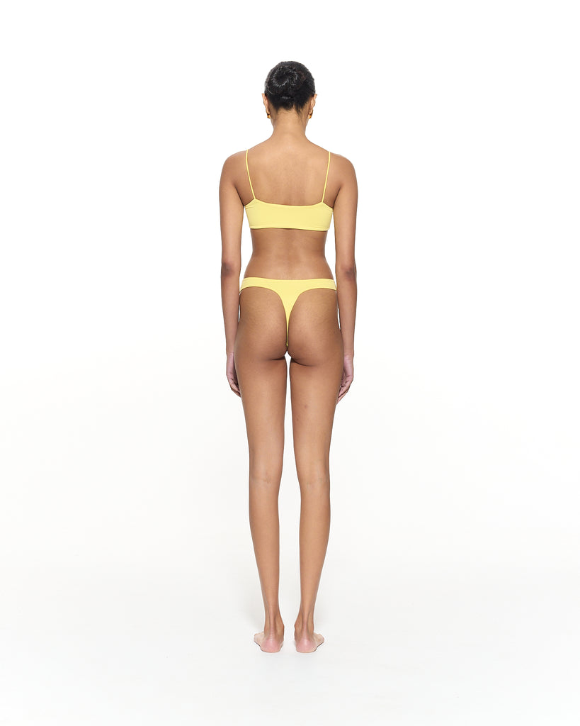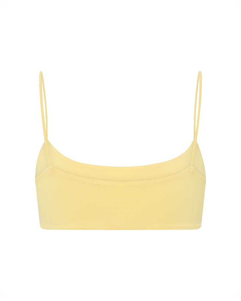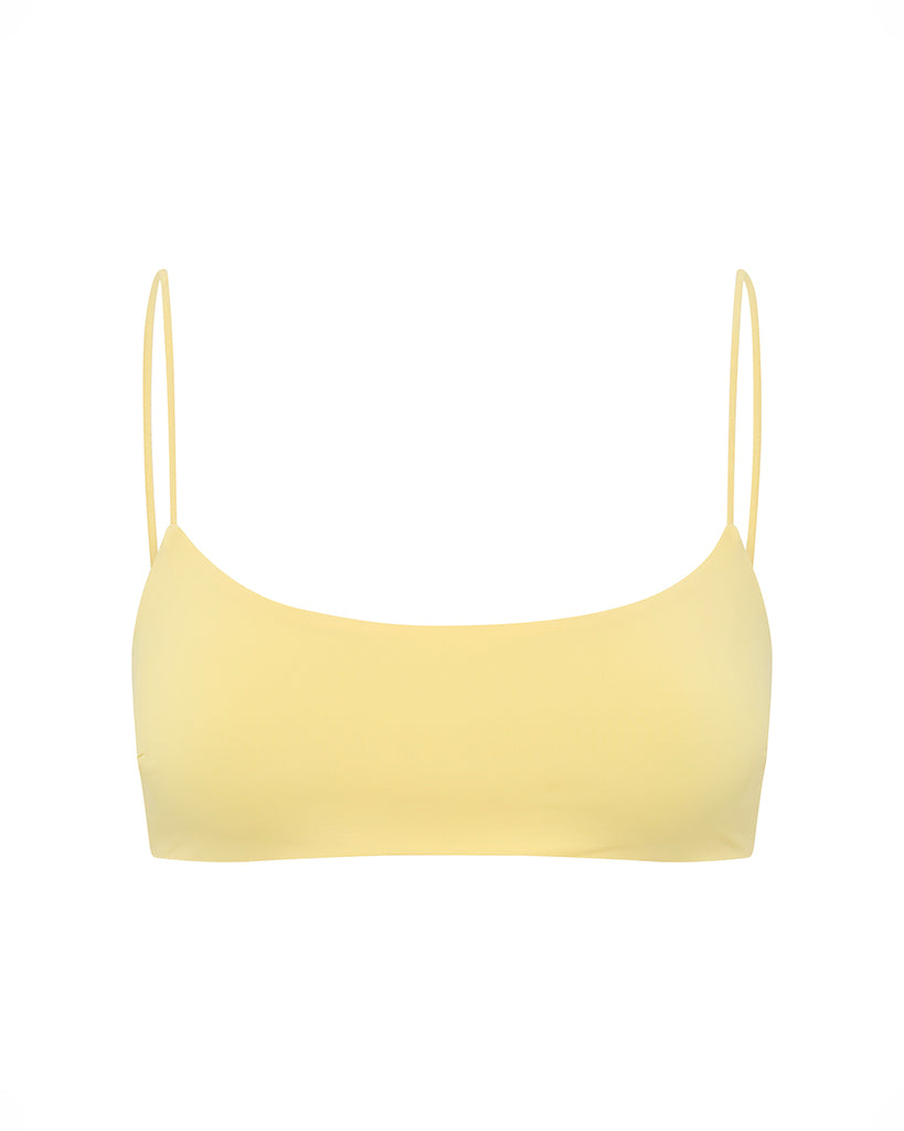The Desi Square Neck Bikini Top features a tank style design with thin shoulder straps and minimal coverage.