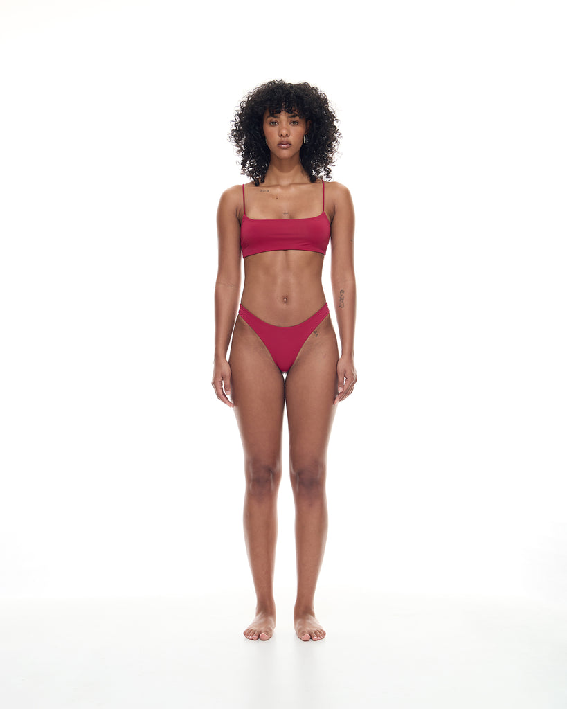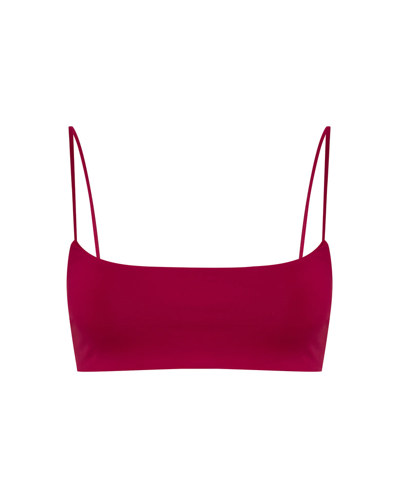 The Desi Square Neck Bikini Top features a tank style design with thin shoulder straps and minimal coverage.