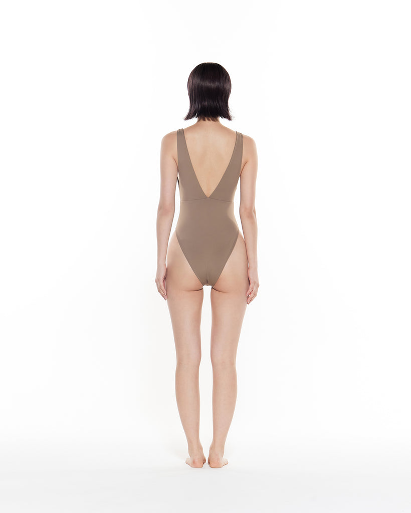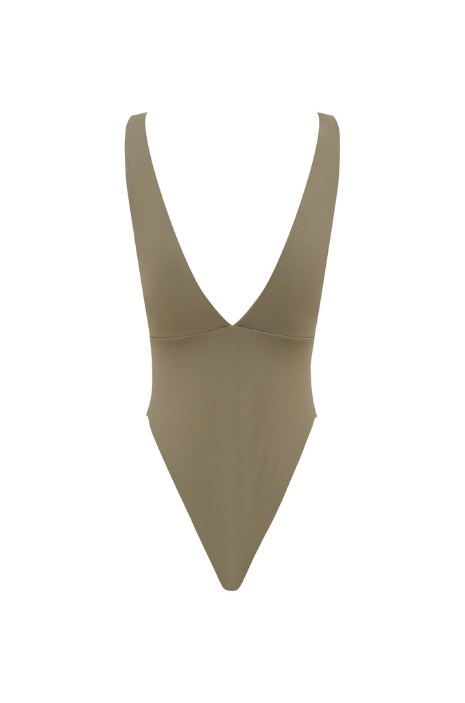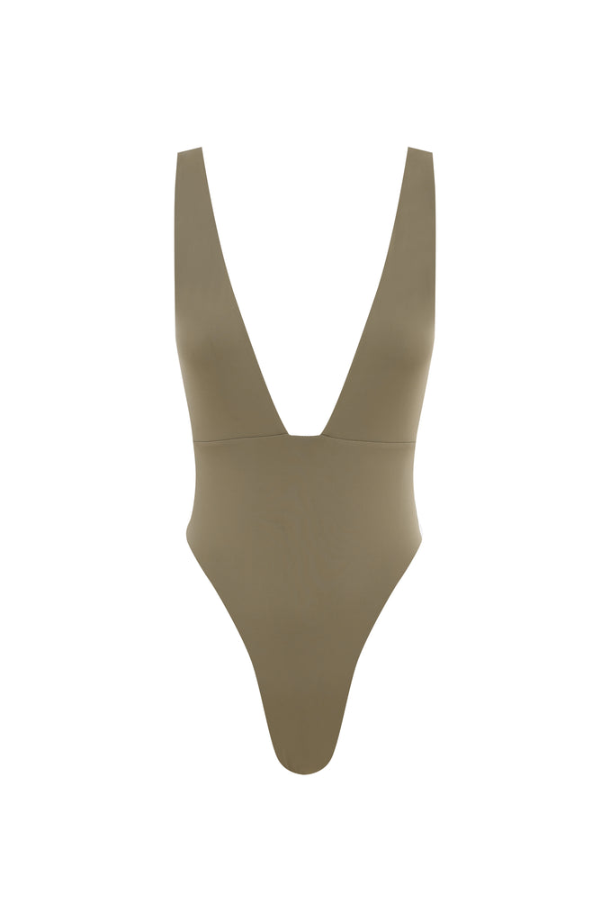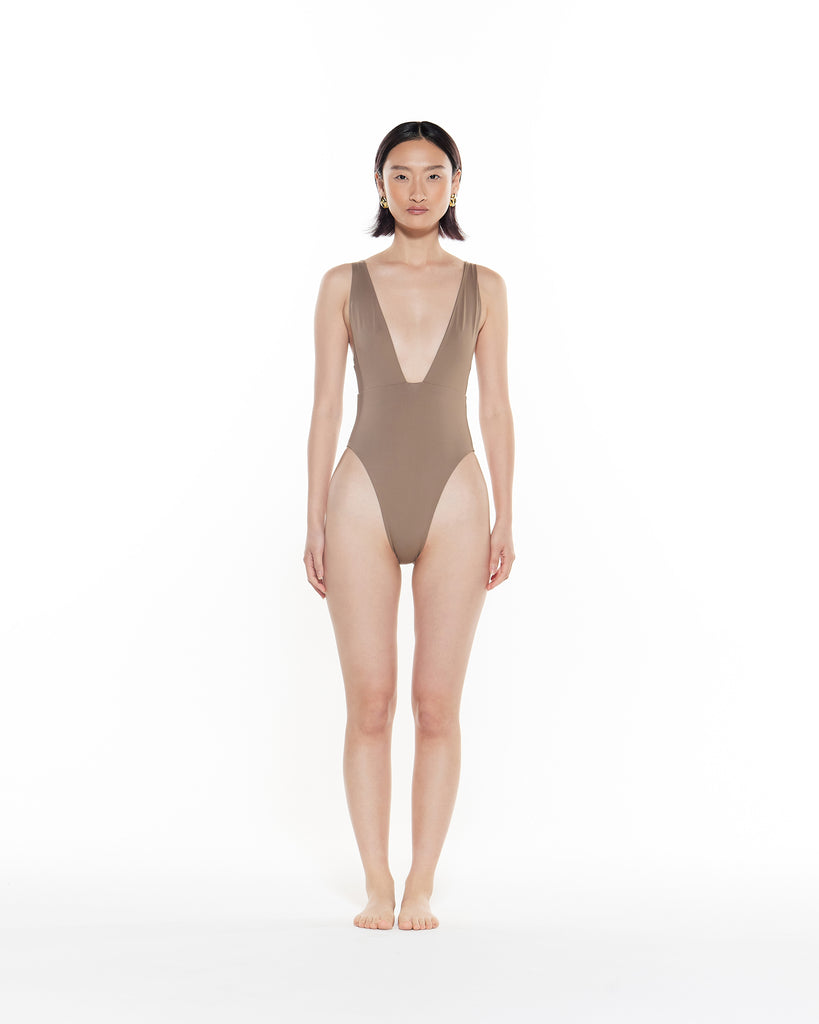 The Vaughn One Piece features a deep V-front and back with our signature leg cut and a medium to full coverage bottom.