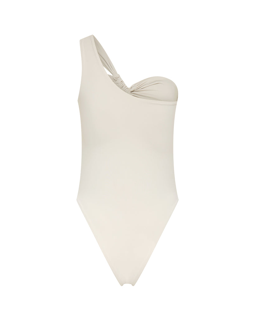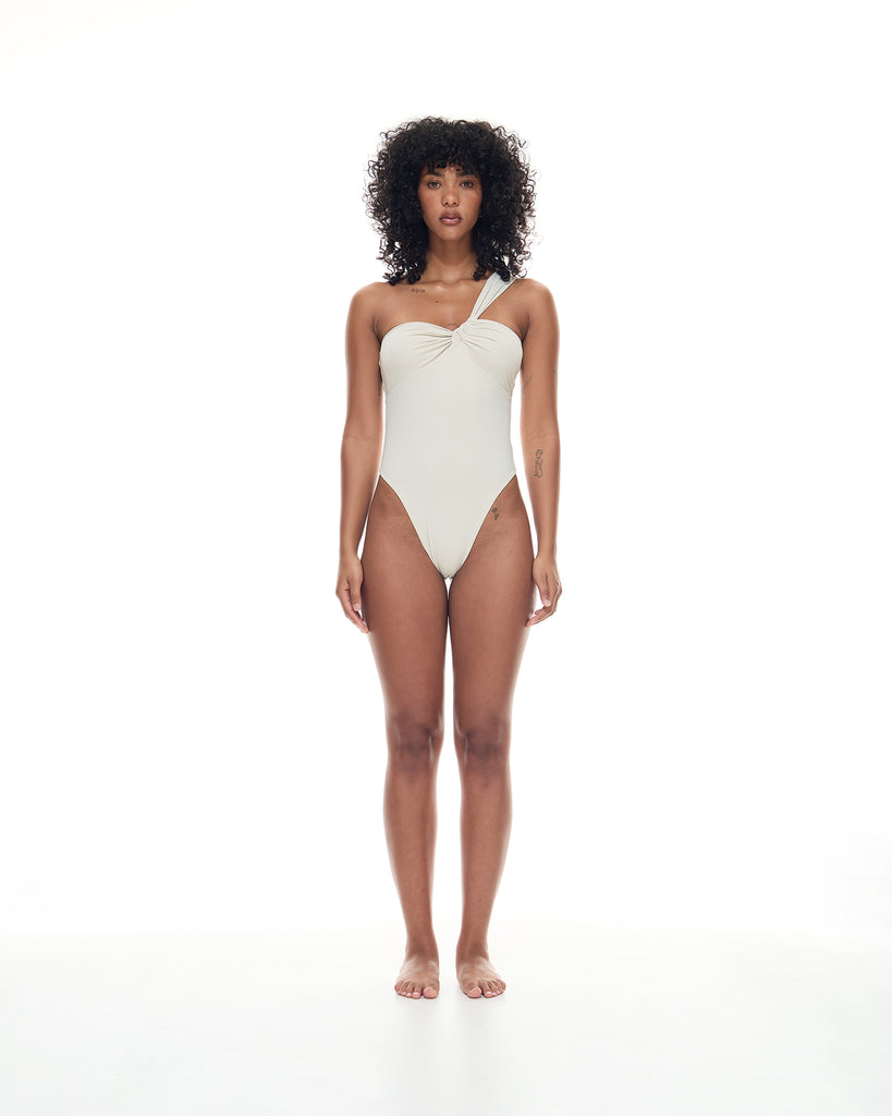 The Ace Asymmetric One Piece features a ruched one shoulder detail, high leg cut and medium coverage bottom.
