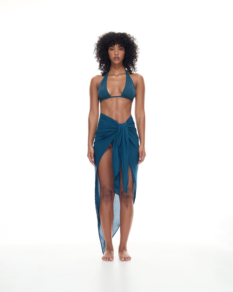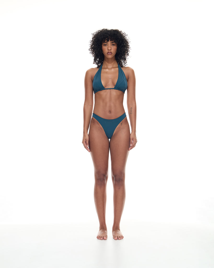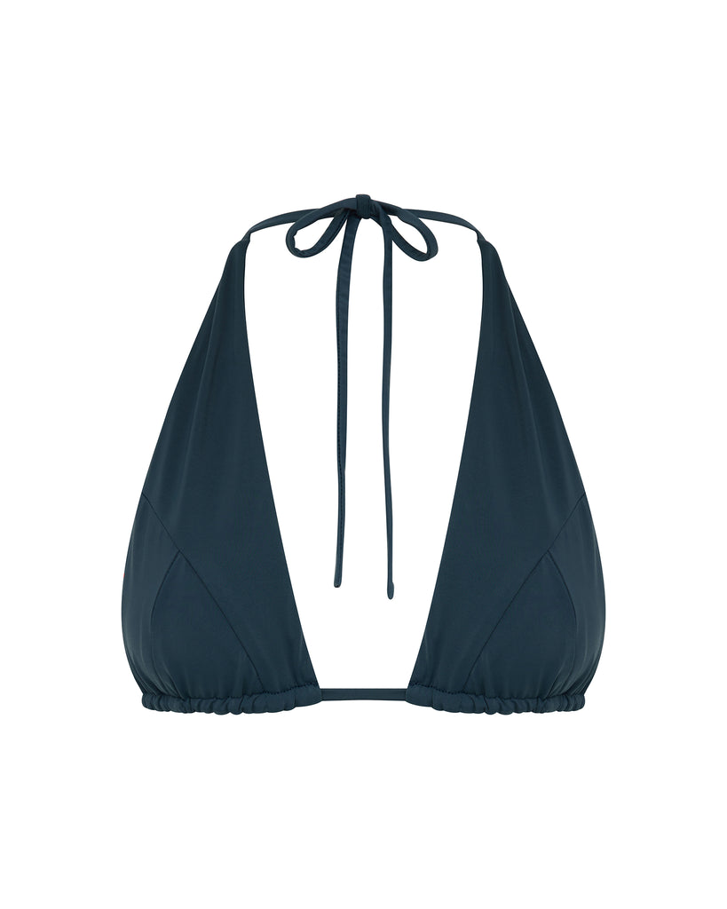 The Cartia Longline Triangle Bikini Top features adjustable drawstring ties and medium coverage triangle cups.