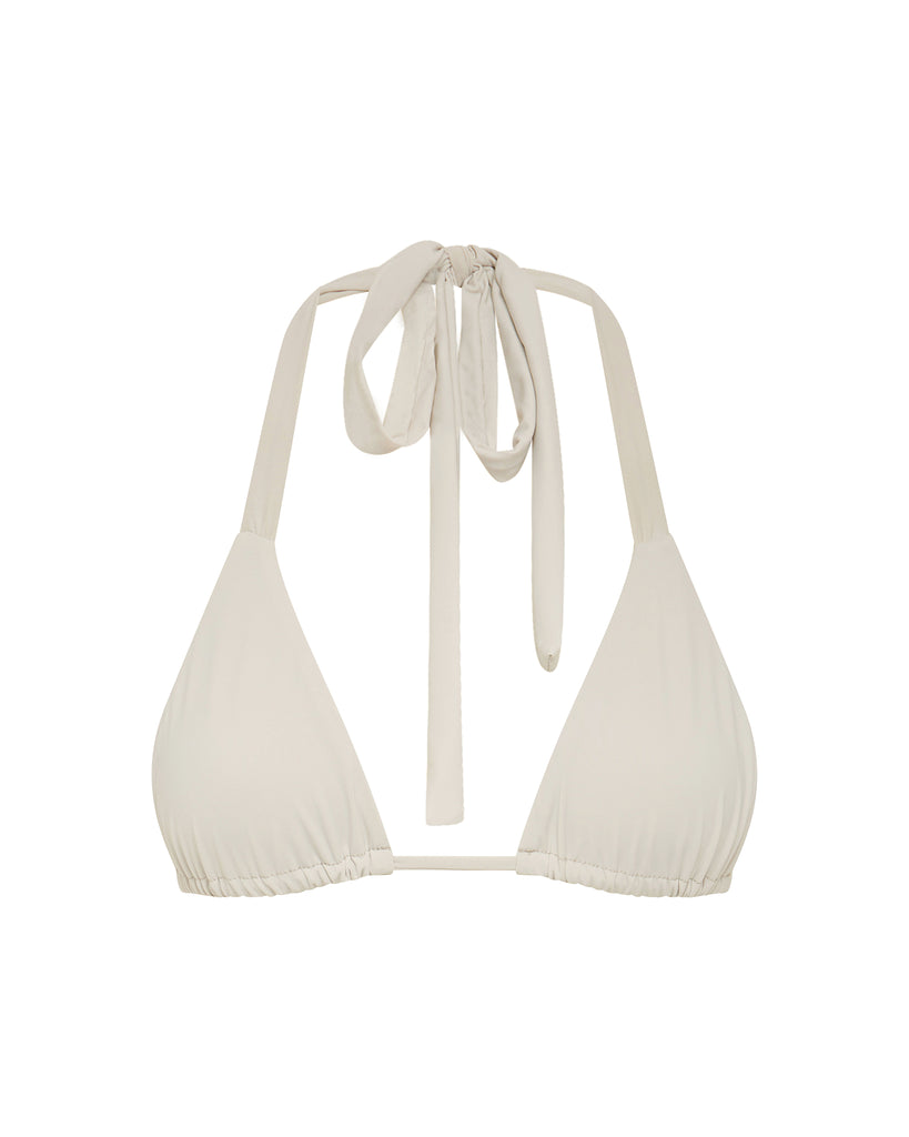 The Dion Triangle Bikini Top features thin-medium adjustable ties and lined triangle cups.