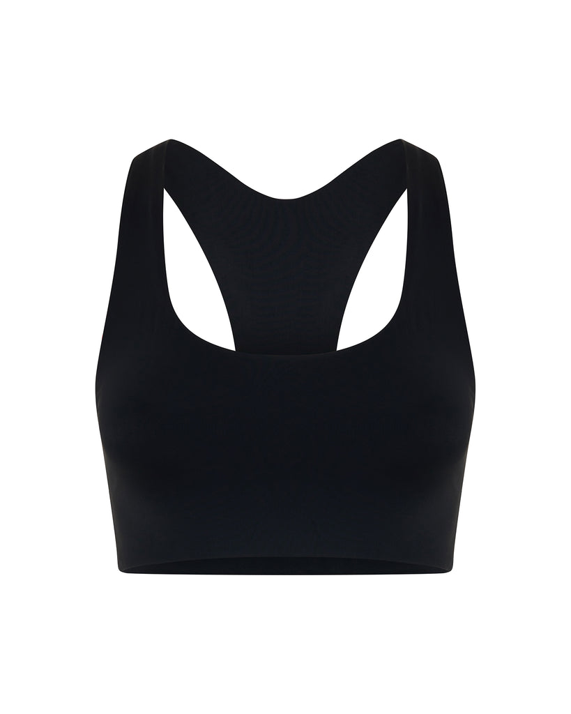 The June Tank Bikini Top features a rounded neckline and racerback detail.