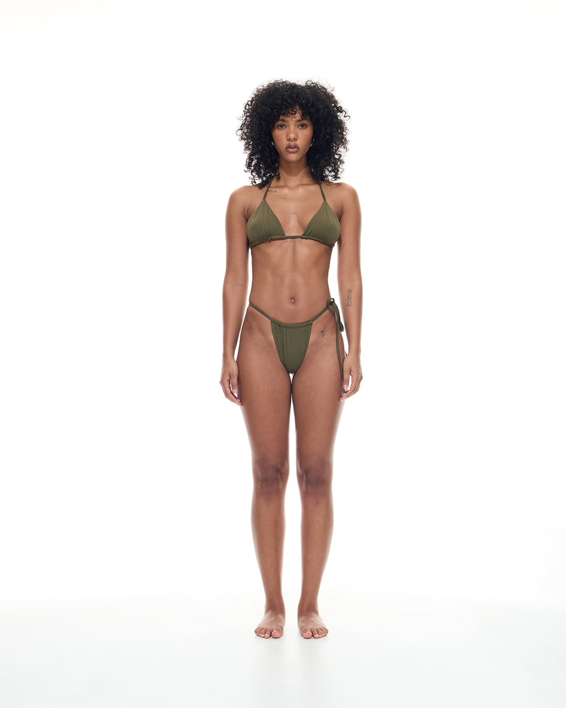 The Vera Triangle Bikini Top features adjustable drawstring ties and lined triangle cups.