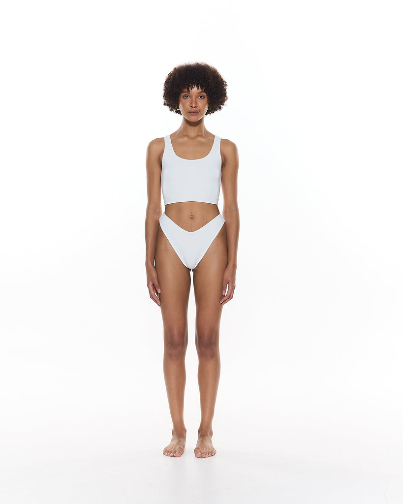 The Stella Tank Bikini Top features a scooped neckline, moderate shoulder straps and medium coverage.