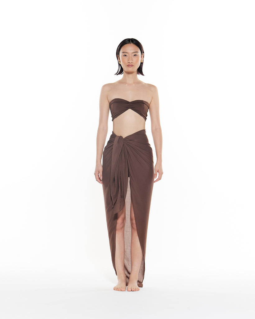 The Leon Sarong is a versatile multi-wear cover up that can be tied on the hips, above the bust or worn as a head scarf.